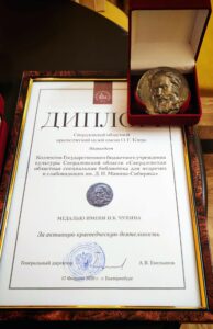 17 февраля 2026 года коллектив Свердловской областной специальной библиотеки для незрячих и слабовидящих имени Д. Н. Мамина-Сибиряка был удостоен почетной награды – медали имени Н. К. Чупина за активную краеведческую деятельность.