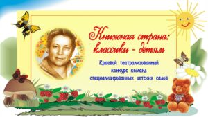 Конкурс проводился Красноярской краевой спецбиблиотекой в онлайн-формате и был посвящён 125-летию со дня рождения детской поэтессы Агнии Барто, а также Международному дню театра и Международному дню детской книги. Команды-участницы дошкольных образовательных учреждений Дивногорска, Железногорска, Канска, Красноярска, Минусинска, Назарово и Сосновоборска представили видеоролики по двум конкурсным заданиям: приветствие «Я расту» и театрализованную инсценировку «Был сынок у маменьки…». Победителя выбирало жюри под председательством директора Красноярской краевой спецбиблиотеки Павла Юрьевича Пермякова: главный специалист отдела специального образования Министерства образования … читать далее... “Определились победители Краевого театрализованного конкурса команд специализированных детских садов «Книжная страна: классики – детям»”