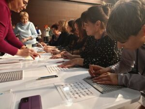 По приглашению Избирательной комиссии Забайкальского края, в честь её тридцатилетия, Специализированная библиотека Забайкальского края провела инклюзивные площадки для председателей и членов районных избирательных комиссий Забайкальского края. Целью этих мероприятий стало – повышение уровня осведомленности и навыков работы с избирателями, имеющими инвалидность по зрению. Участники познакомились со специальными техническими средствами, трафаретами для слабовидящих и незрячих избирателей. Узнали о магических шести точках Брайля, пробовали себя в написание шрифтом Брайля, что в дальнейшем поможет им эффективнее взаимодействовать с незрячими избирателями. В предлагаемых обстоятельствах члены избирательных комиссий погрузились в обстановку процесса голосования, примерили на себя роль избирателей, лишенных зрения. Это позволило им почувствовать себя на месте незрячих избирателей и в дальнейшем соблюдать требования к организации информационной доступности. Знакомство с живописью для незрячих, которая была представлена в тактильных моделях. Кинозал с тифлокомментариями расширили представление участников о возможностях и мировосприятии незрячими гражданами. Организаторы отметили высокий уровень заинтересованности и вовлеченности участников. Члены избирательных комиссий активно задавали вопросы, делились своим опытом и предлагали собственные идеи по улучшению доступности избирательного процесса. Полученные отзывы свидетельствуют о том, что инклюзивные площадки стали ценным ресурсом для повышения профессиональной компетентности и формирования эмпатийного отношения к избирателям с инвалидностью.